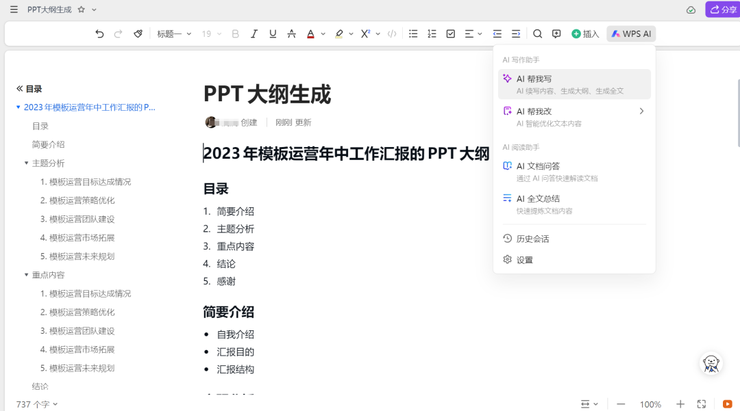 金山WPS推出的AI办公助手,能生成高质量的文档和 PPT,处理数据、阅读文档样样行。