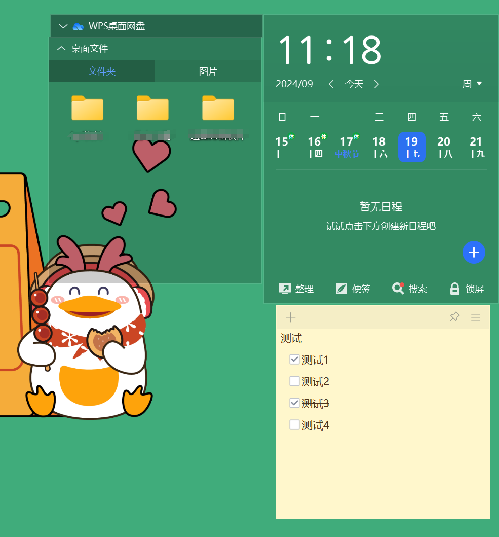 内嵌在WPS内的一个功能,不需要开通会员,可以将待办事项一一罗列在桌面上,已完成的进行标记,而且还有自动整理桌面文档的功能,将桌面进行分区,让桌面不再杂乱。