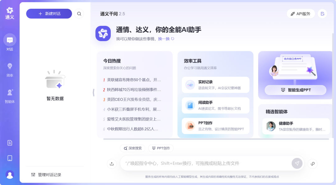 阿里自研的AI助手,可以生成创意文案、理解图片和解析文档,实时语音转文字,大会多位发言人速记、文献阅读、搜索、对话,什么都能干。