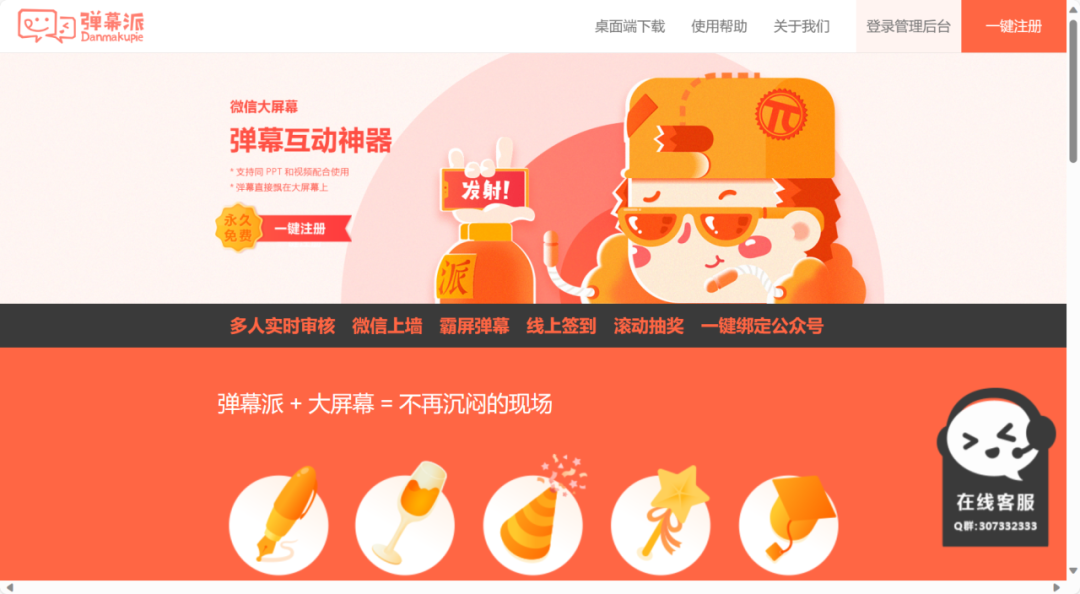 弹幕派不仅有抽奖功能,还是年会氛围感神器,只需一块大屏幕,弹幕派就会把它变成畅所欲言的弹幕墙,支持自定义弹幕字体大小,颜色、播放速度等指标,可以在云端自动过滤不和谐的弹幕,也可以手动挑选最优质的弹幕,管理员可以直发样式醒目的弹幕。