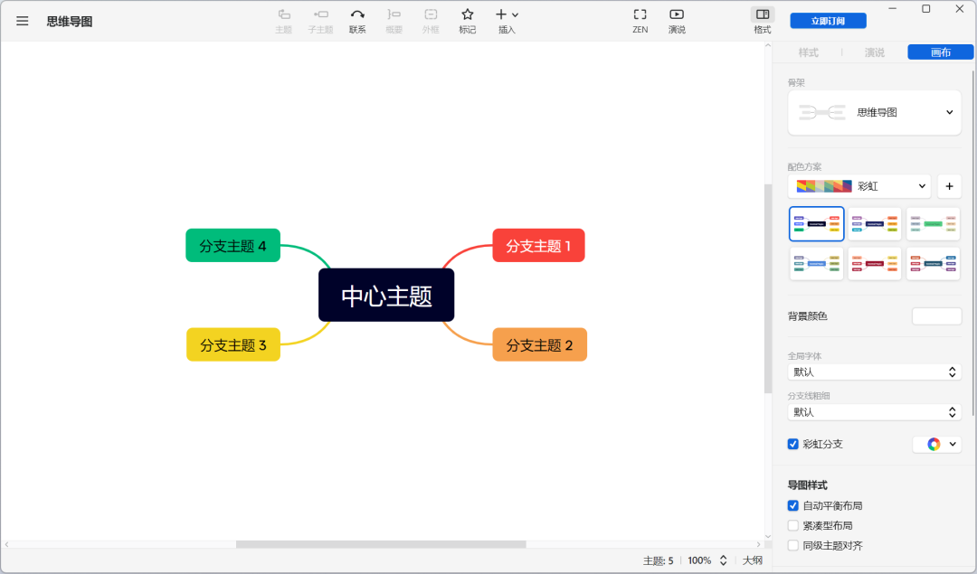 Xmind能够提供多种思维导图类型,还有丰富的图标和主题,虽然免费但是有节点限制,到达一定数量之后需要收费。