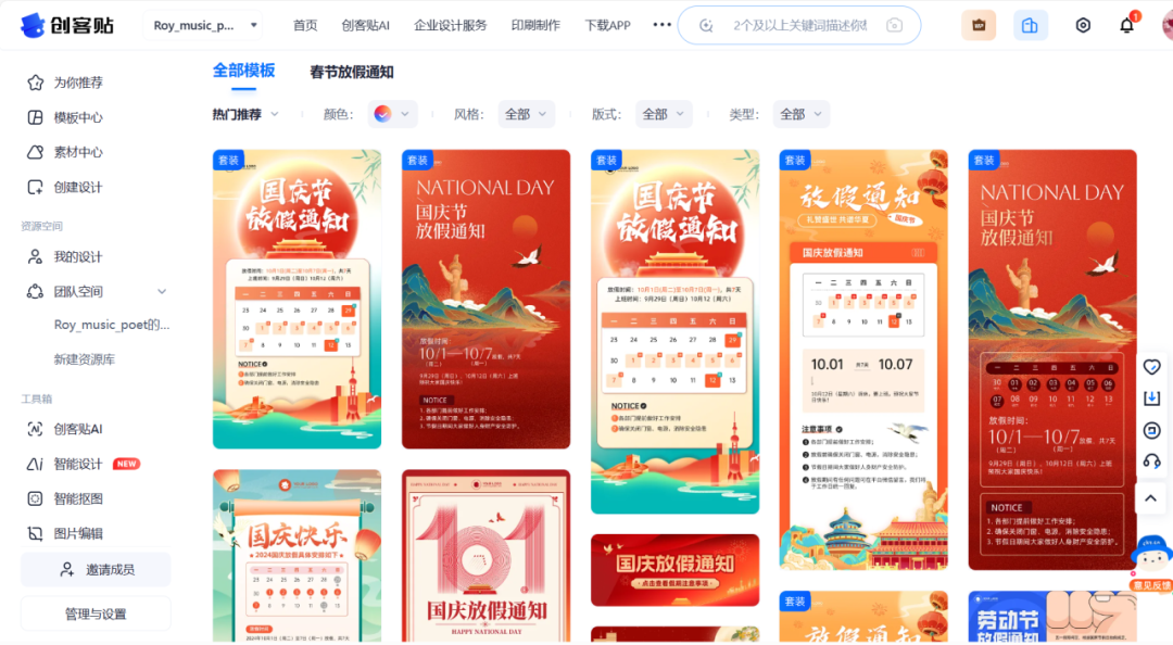 创客贴的模版很多、功能也很齐全、部分素材免费。