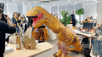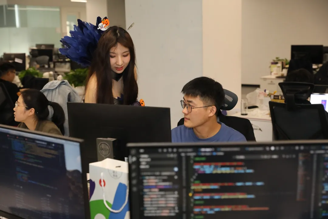 当然也可以安排一些个别员工装扮成NPC,来和其他员工进行互动。比如游族网络曾经安排了死神/巫女去发糖,还有恐龙去“吓唬”员工。