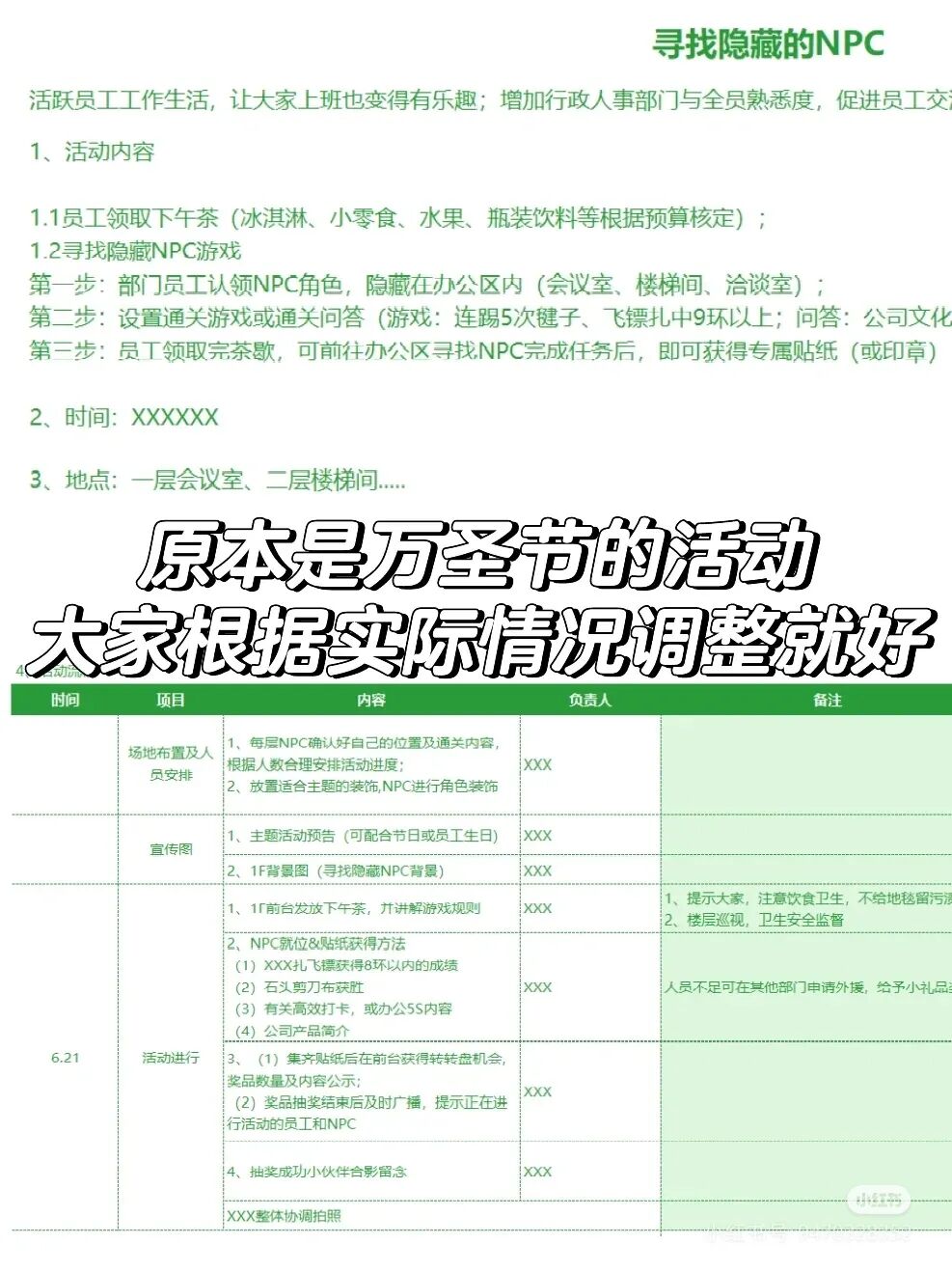 除了NPC主动走到工区外,也可以让员工们动起来去寻找NPC,具体可参考如下的活动方案喏~