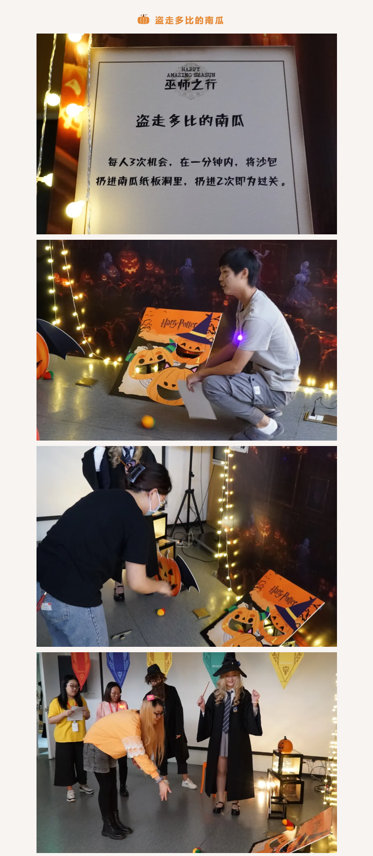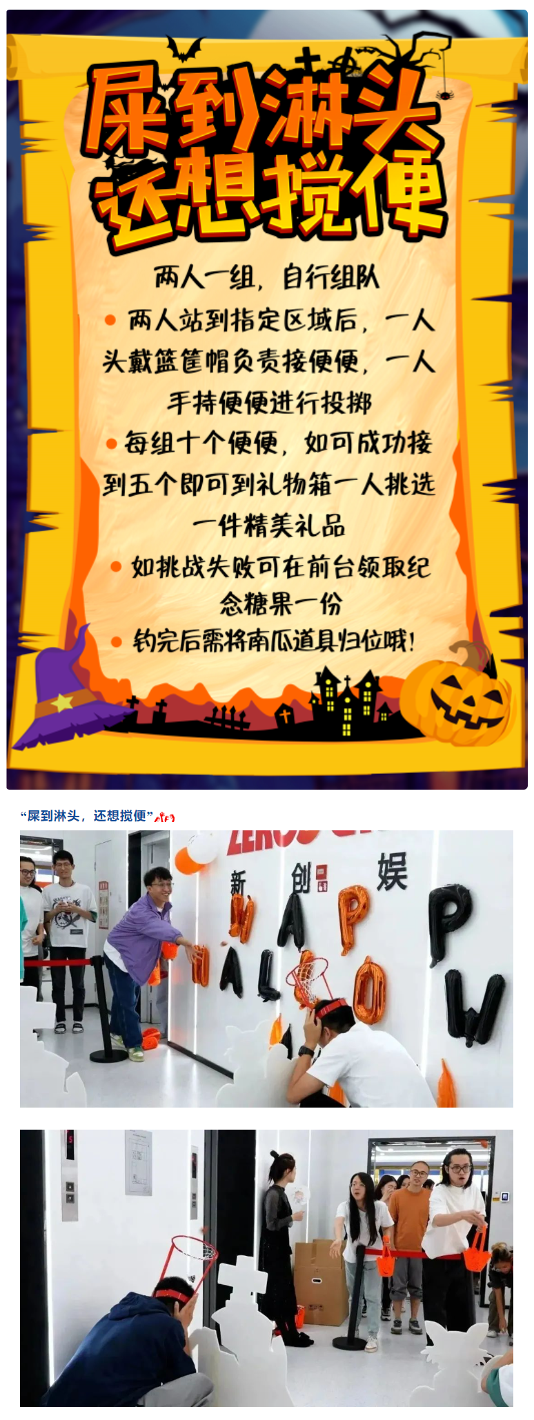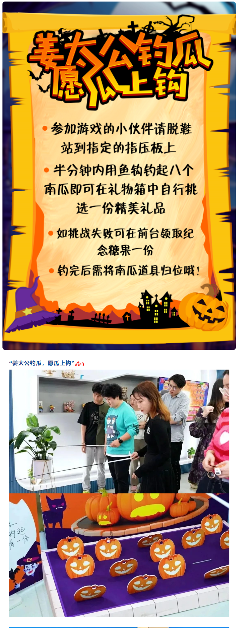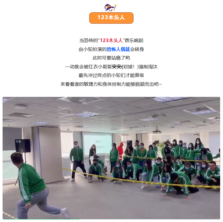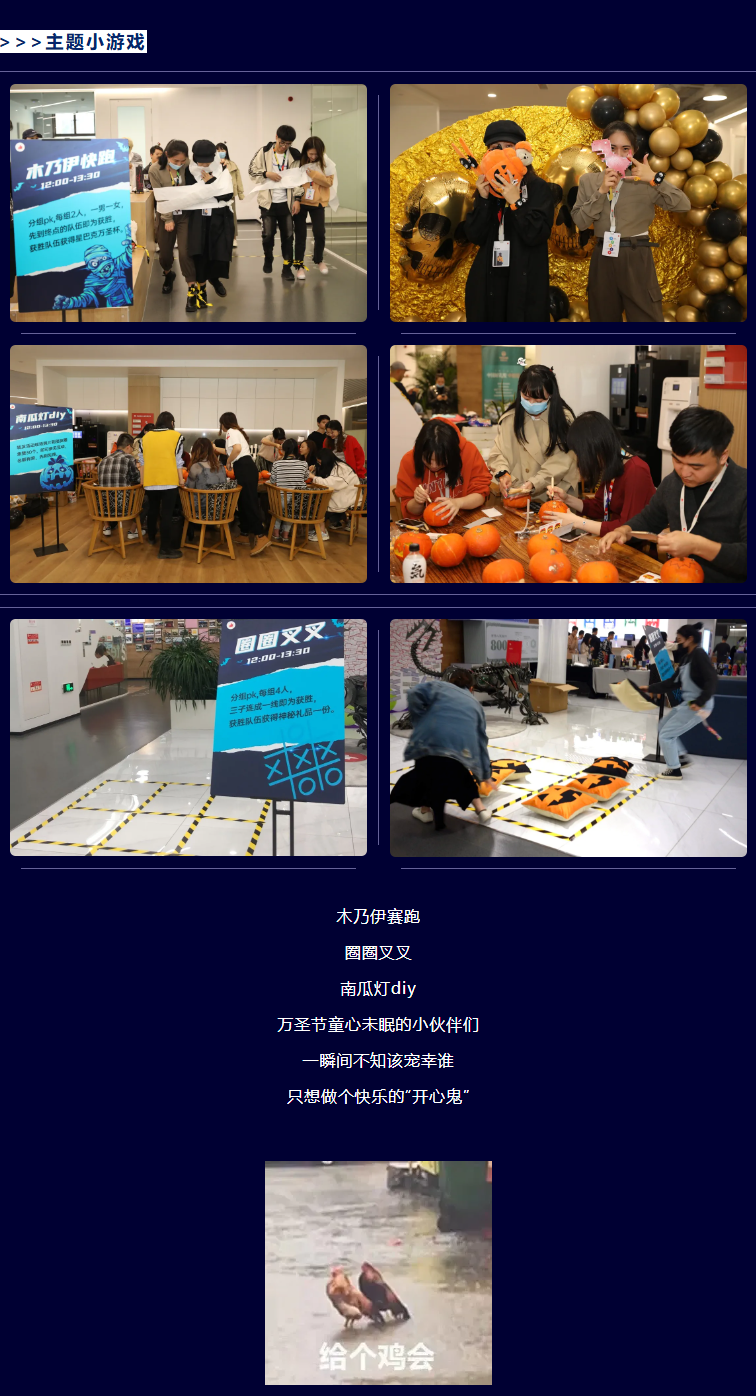 除了沉浸式的主题游戏,还可以选择一些小游戏做成合辑,让员工来挑战,例如新创娱游就在往年万圣节策划了搞怪小游戏系列。