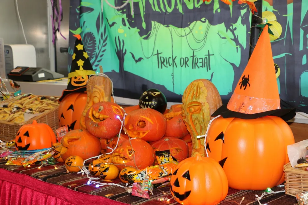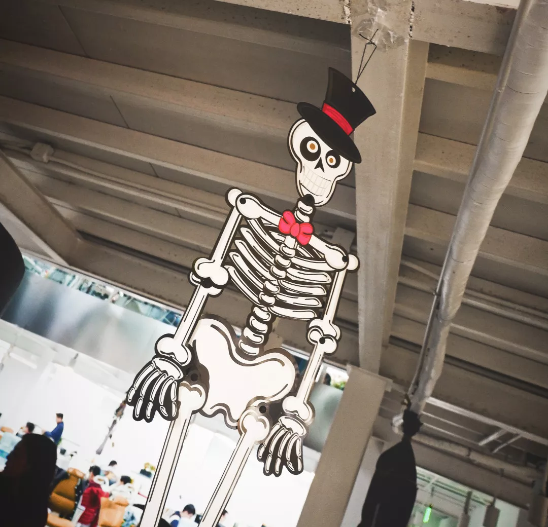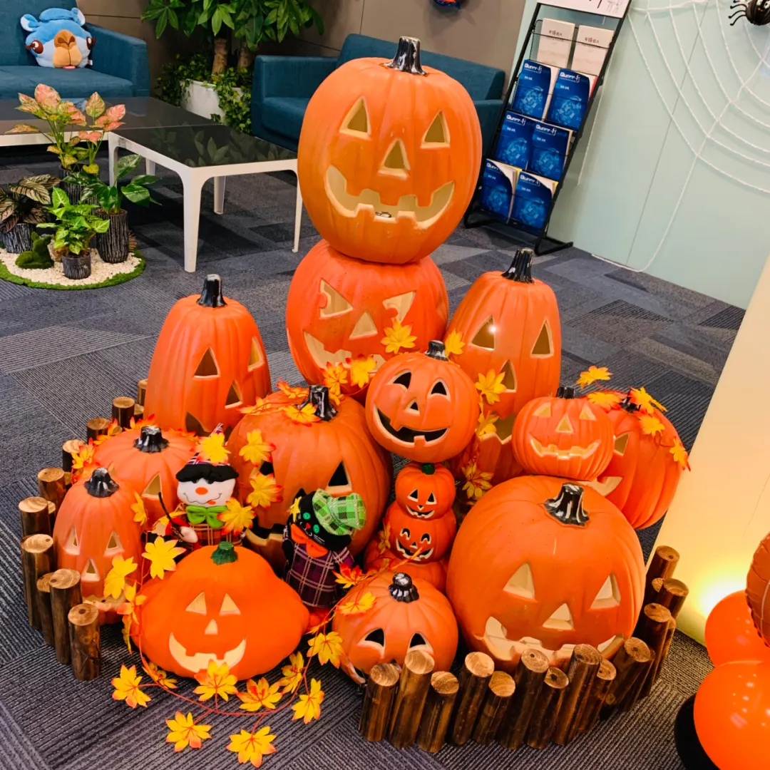 万圣节相关的道具也可以巧妙地摆放在公司的各个区域。通常会选择南瓜灯、骷髅、死神等形象的立体摆件。