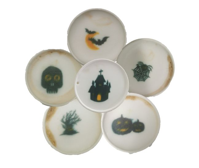 当然也可以从饮品上着手,例如在咖啡上设计出万圣节主题拉花:蝙蝠、骷髅、城堡、蜘蛛网、南瓜和枯树等。