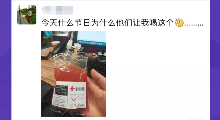 还有选择下面这类血包类的饮品,给员工们补充能量,话题讨论度杠杠的!