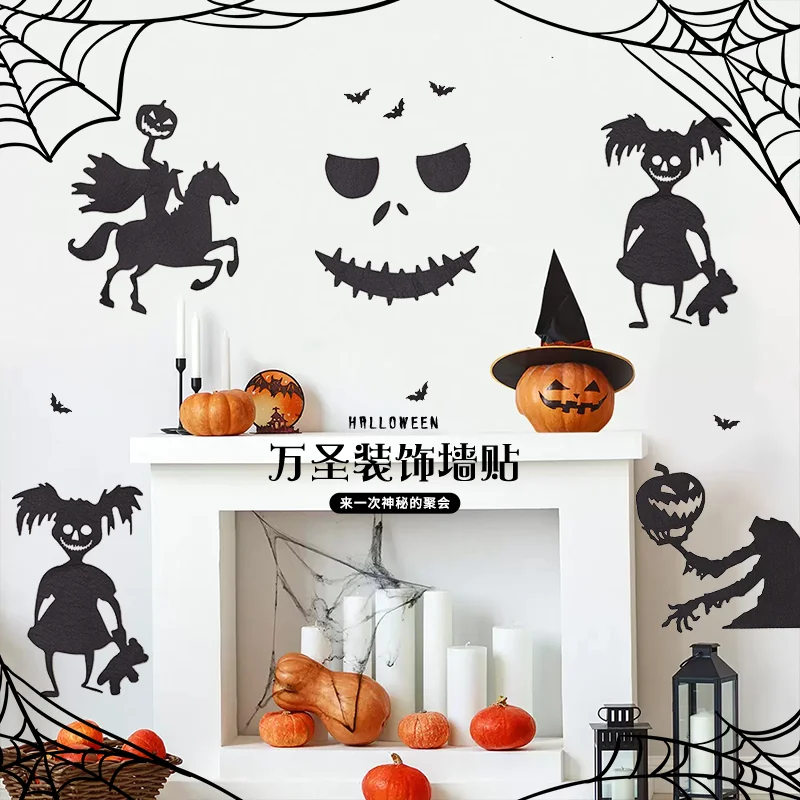 譬如玻璃、墙面甚至是地面,都可以粘贴上万圣节主题的贴纸,有的3D壁画贴纸还可以营造意想不到的视觉效果。