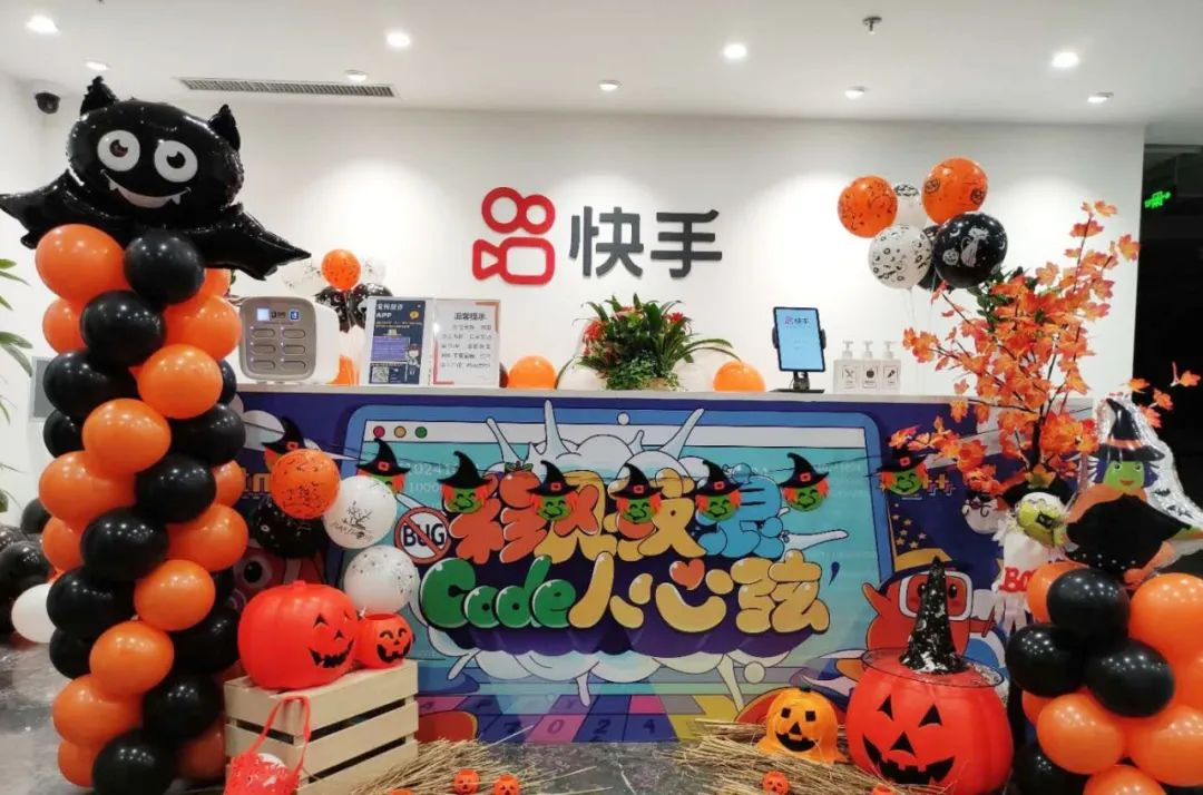 ⬆️快手往年万圣节前台、服务台;气球墙,加上几个“捣蛋鬼”。