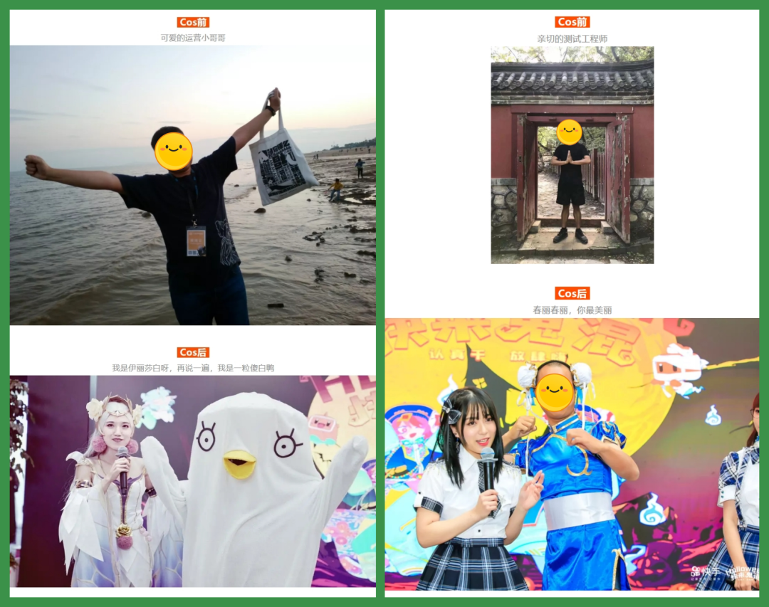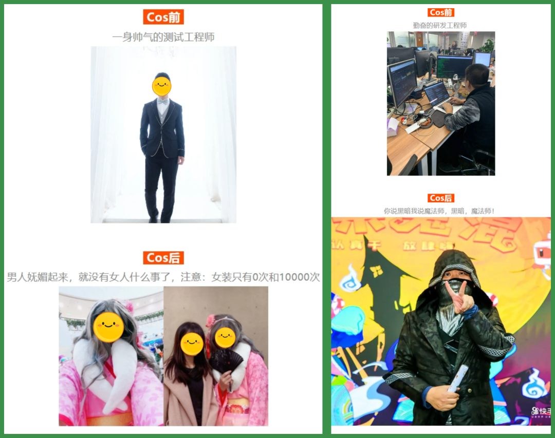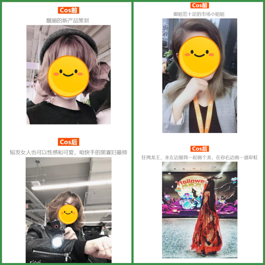 例如快手曾经以“快来鬼混”为主题,举行过一场员工Cos秀,妆前妆后的对比也成为了活动的一大看点。