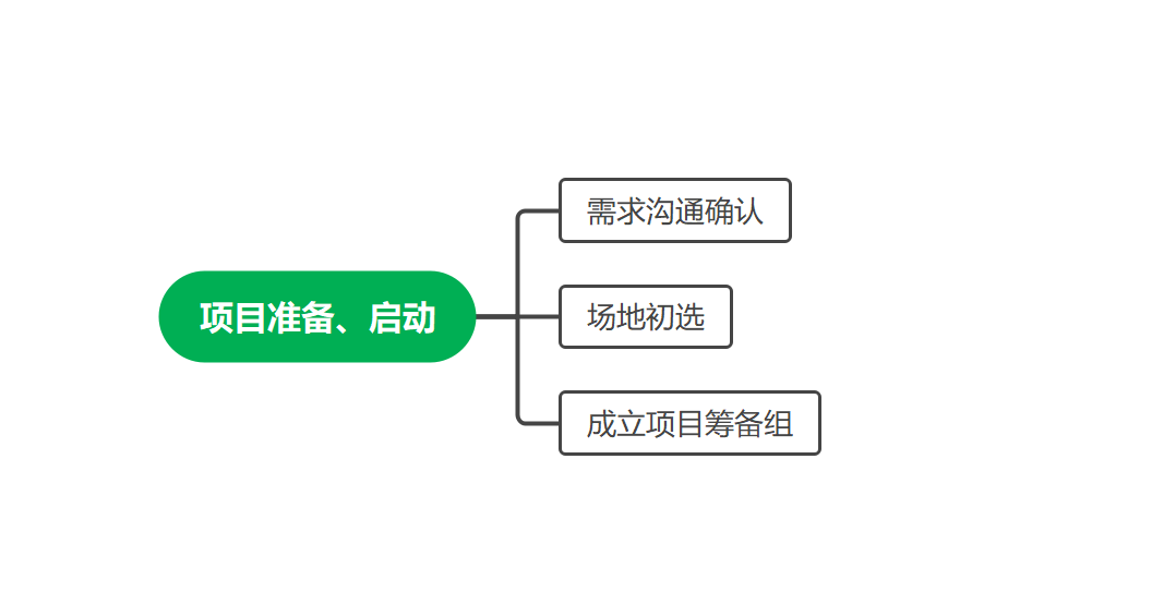 第一步是项目的启动阶段,首先需要确认一些基本的需求,比如:时间、主题、形式、人数、预算等,然后对场地进行初步的选定,定好档期、面积、和对舞台的要求。最后成立专门的项目组,分配人员的安排。