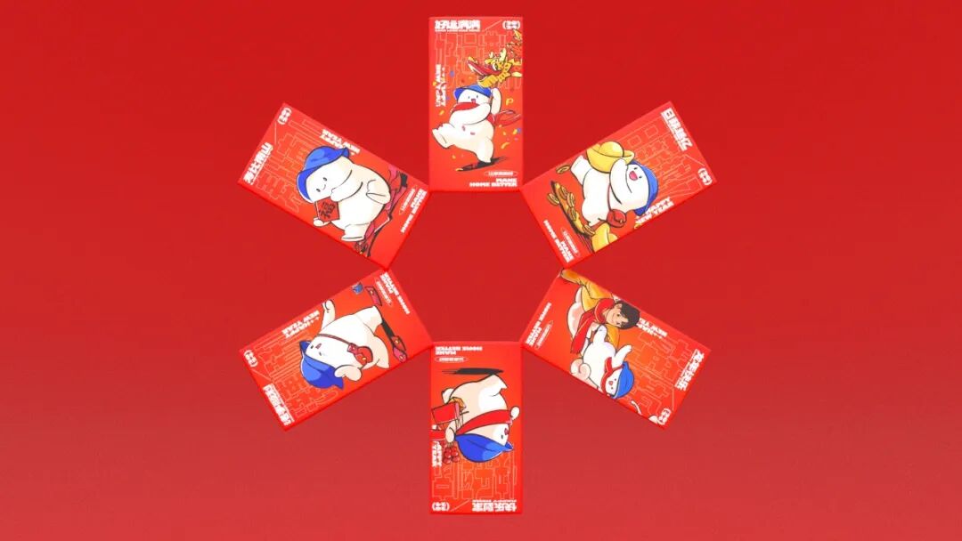 礼盒、笔记本和红包的设计也彰显了对称之美