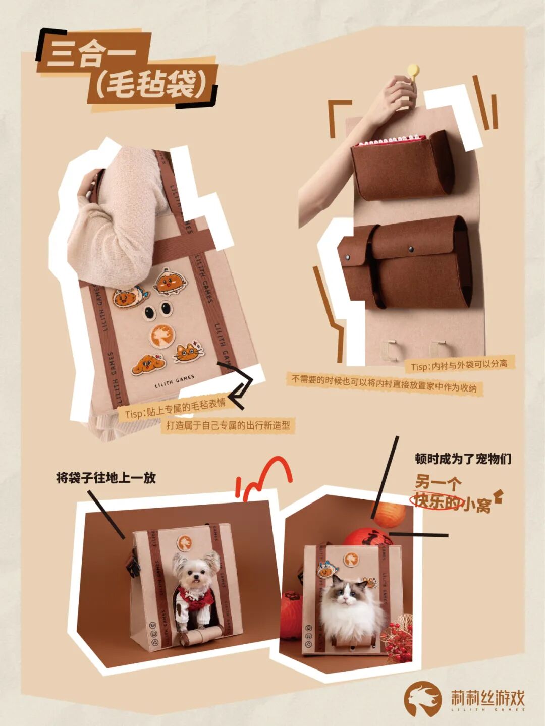 寓意“柿柿”如意、团圆美满的手提毛毡袋