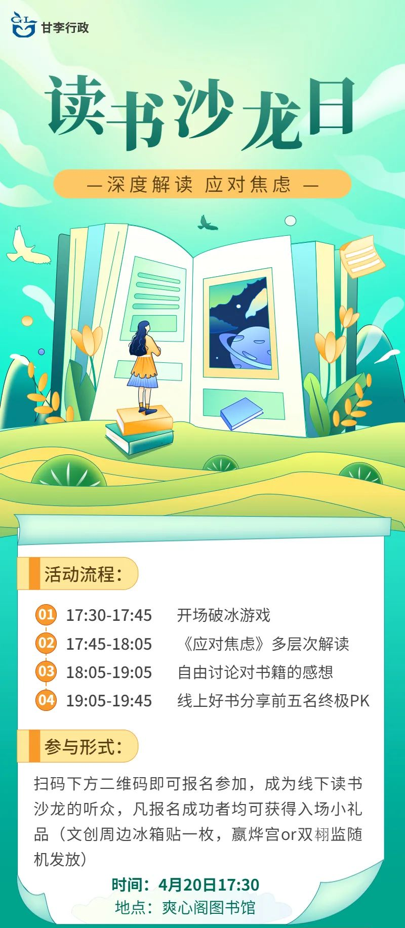 甘李集团的行政也是开展了疗愈心灵的读书沙龙活动,帮助大家应对焦虑,员工也可以通过活动拓展社交圈。