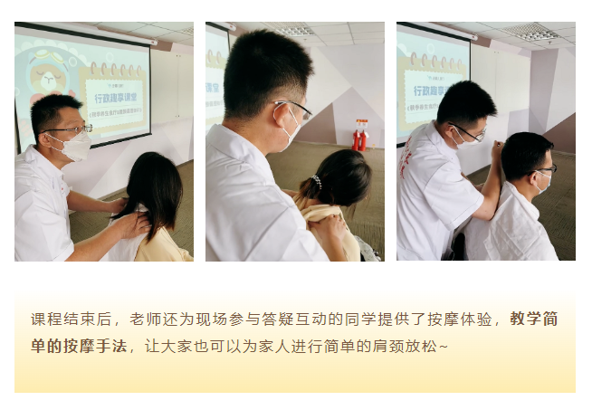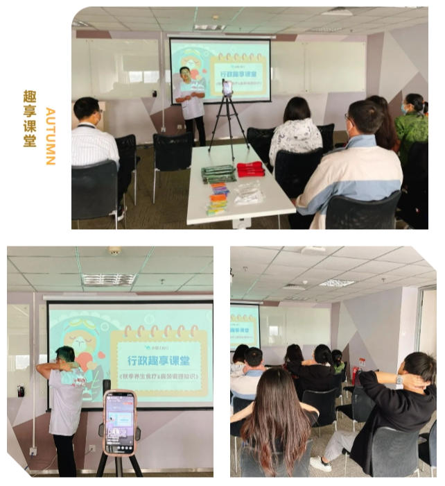 去哪儿网公司也是举办了中医健康讲座,为员工科普了一些日常生活中需要注意饮食、作息等问题。针对颈椎病的缘由及防治方法,进行了现场简单的动作演示,带领员工实践放松,更好地帮助大家了解和养成良好的习惯。