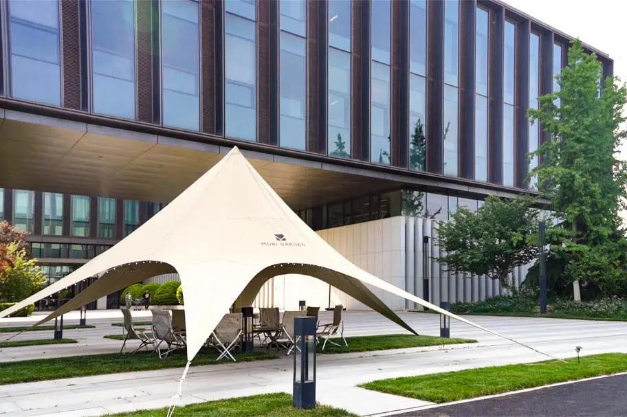 比如华为北京某些办公区就建立起了一个专供员工休息的“天幕区”,这些地方都由帐篷搭建而成,这是一个让大家放松心情,舒缓疲劳的专属角落。