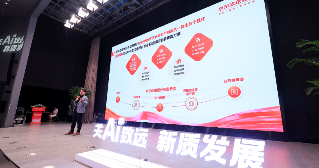 京东政企业务的工服定制平台除了拥有强大的供应链,保证服装款式多样和质量过关外,还借助AI驱动服装设计,快速生成3D效果图,甚至能预览动态穿着效果,并线上为每位员工“量体裁衣”,让每位员工的选到称心又舒适的工服。同时支持智慧洗护、一件柔性定制等服务,大大降低了企业定制的门槛,优化了工服定制的成本和服务体验。