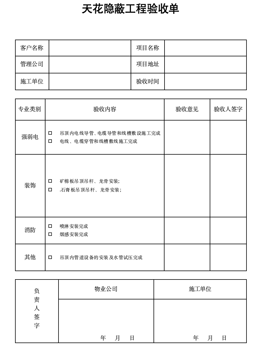 △天花隐蔽工程验收单示意