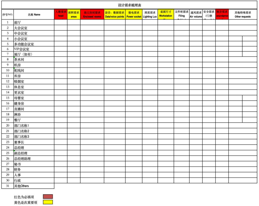 装修项目推进顺利的前提,一定是符合公司管理层与各部门对新办公环境的期待和需求,因此在设计启动之前,必须要好好做的一件事就是: