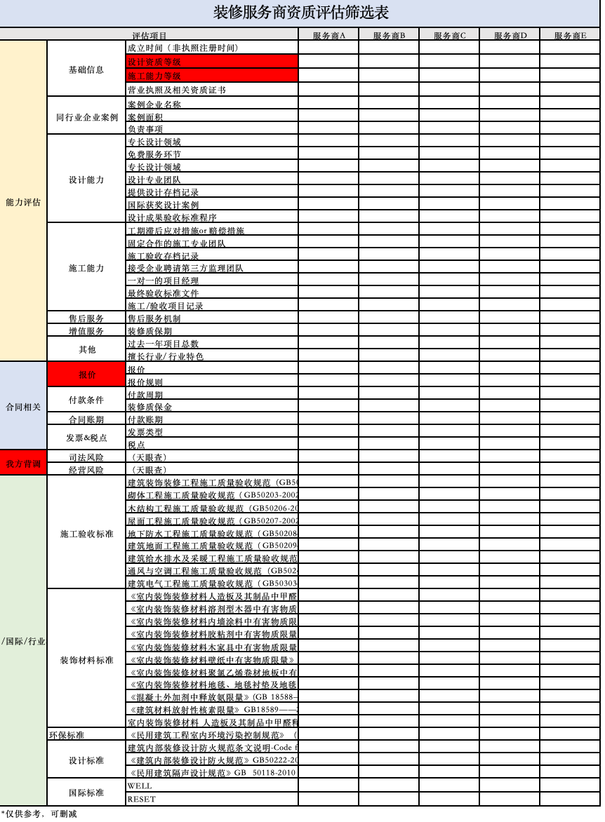 △装修服务商资质筛选表