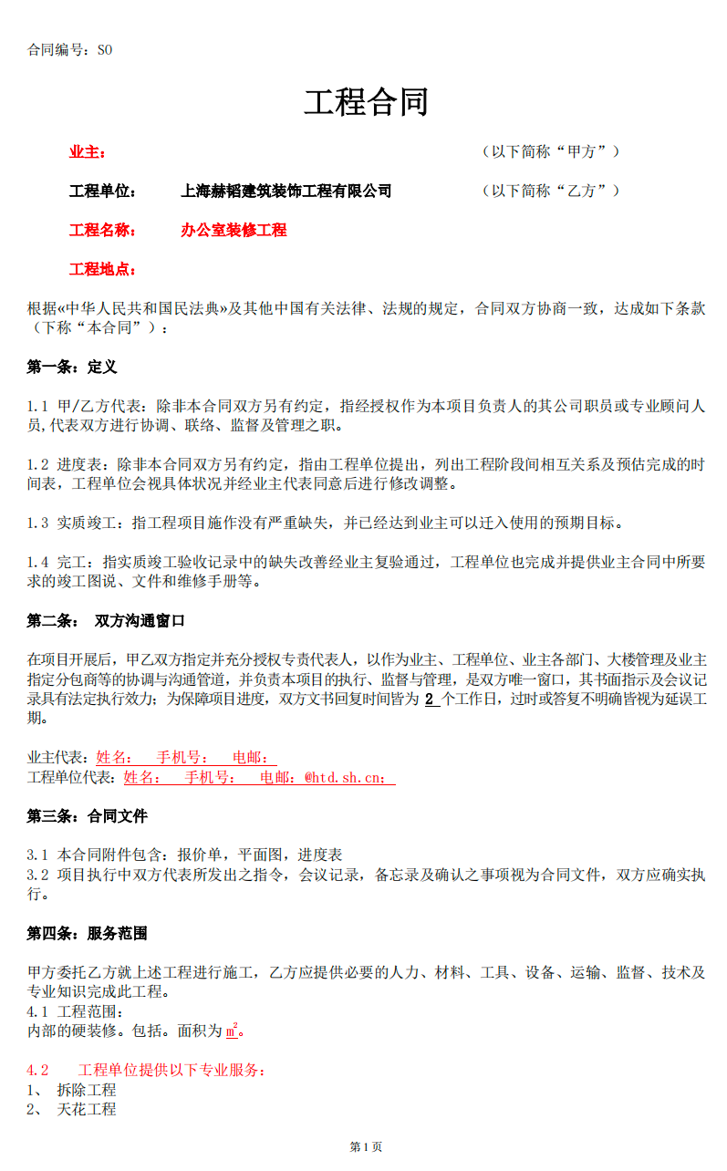 ① 在合同里约定装修增项比例,避免导致工期延期,比如有的公司会约定改造返工误装类项目不超过整体装修项目的10%,