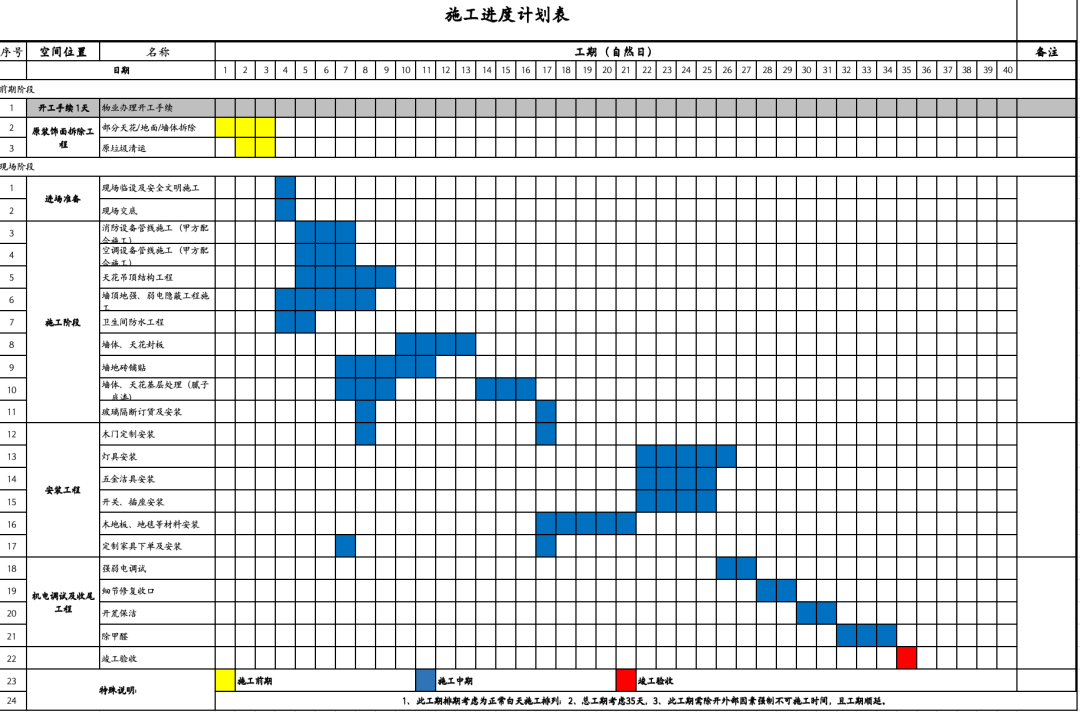 确认后还需一份施工进度计划表,并分配各节点的负责人。
