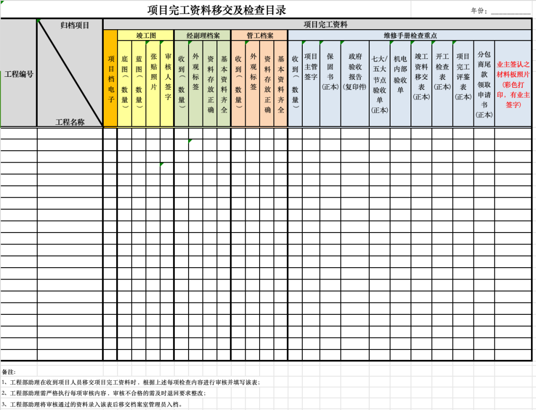 △项目完工资料表
