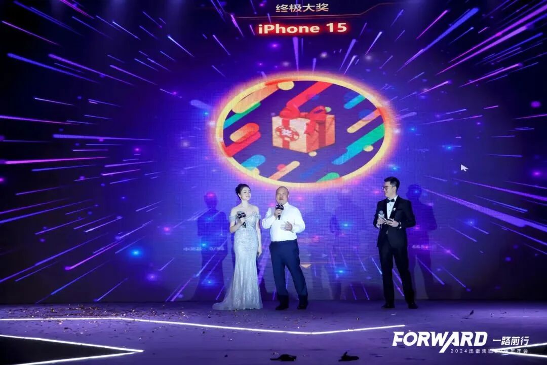 紧张而令人期待的抽奖环节穿插于节目当中,MacBook Pro、iPhone 15 Pro、Xiaomi 14、戴森吸尘器……奖品实用且丰富,还有BOSS现场任性加码20台iPhone 15 Pro,终极大奖让迅雷的小伙伴们直接沸腾。