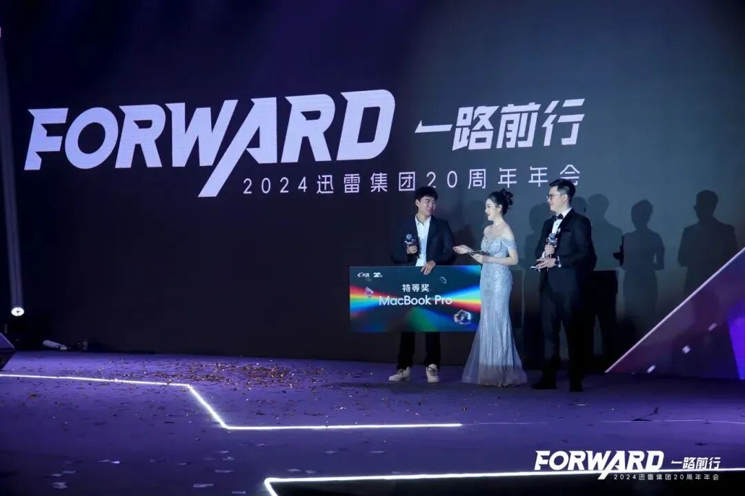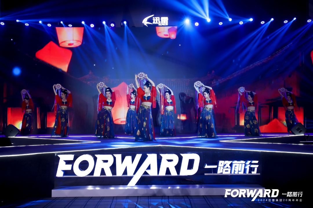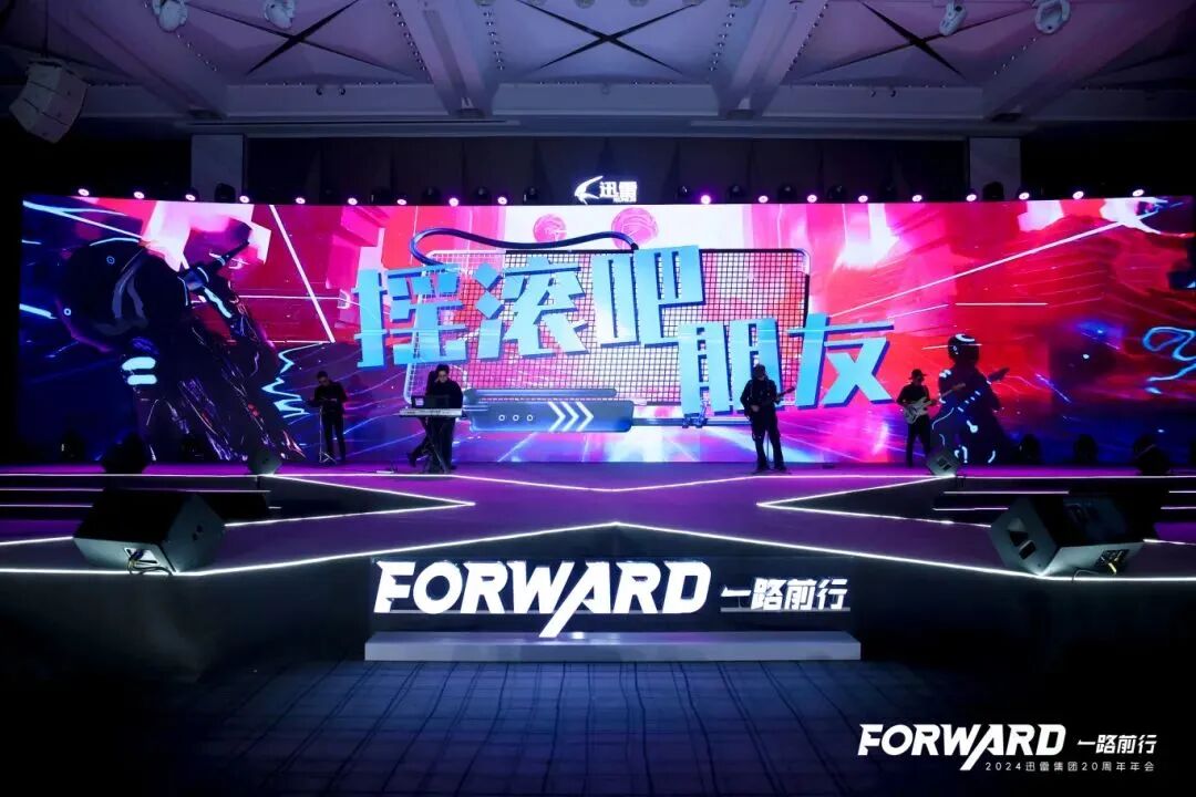 恰逢20周年,迅雷集团举办了一场以“FORWARD 一路前行”为主题的周年年会,年会开头,管理层们带来回顾与展望,并一起切下蛋糕、注入香槟,所有人举杯相庆,共同为迅雷送去祝愿。