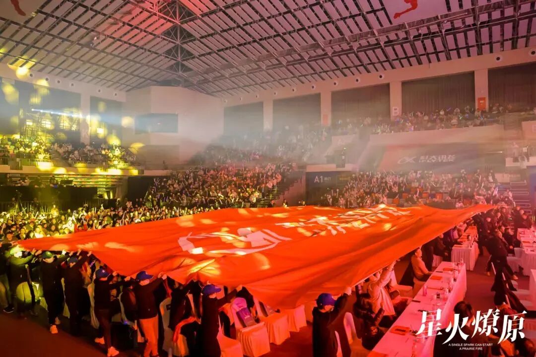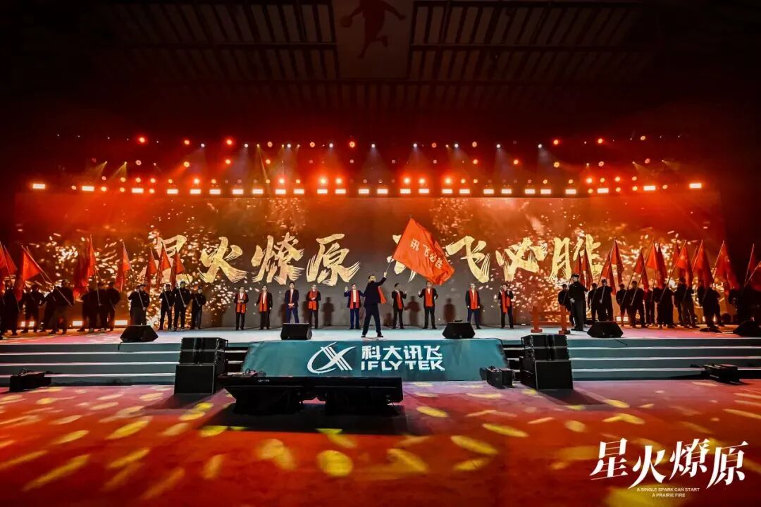 科大讯飞去年的年会主题为“星火燎原”,是时隔3年的一场线下年会,这场年会的地点选择在了体育馆,总部之外,区域的小伙伴们也在线下集体观看了直播,和大家相聚共此时。年会开始,科大讯飞独有的传旗誓师环节让人热血沸腾。