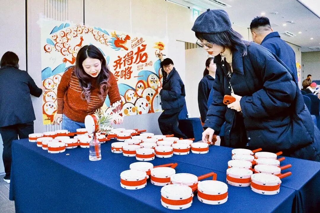 特别要提一下的是签到环节,大家只需要在签到的时候找到代表自己的小鼓进行签名涂鸦,为龙注入团魂即可领取到今年的年会专属周边礼物——拨浪鼓,而拨浪鼓寓意着2024 以乘同伙共同拨响对彼此爱的鼓力,力量的力。