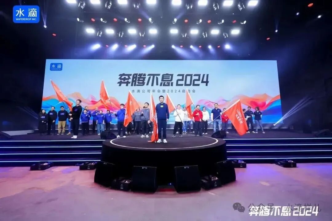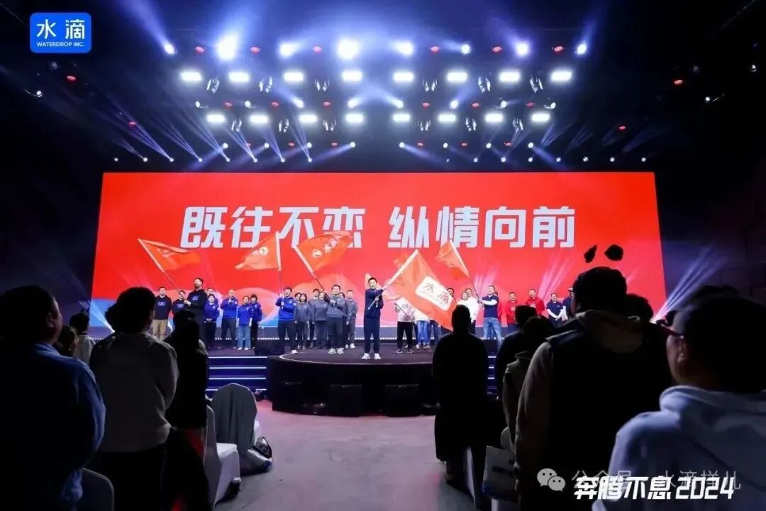 水滴去年的年会以“奔腾不息2024”为主题,同时采用了线上直播的方式,让不同地区的分公司能够在同一个时间云相聚。启动会上在各个核心业务代表的带领下大家齐喊口号,一面面旗帜高高飘扬,传递着各自的信念和呼声。