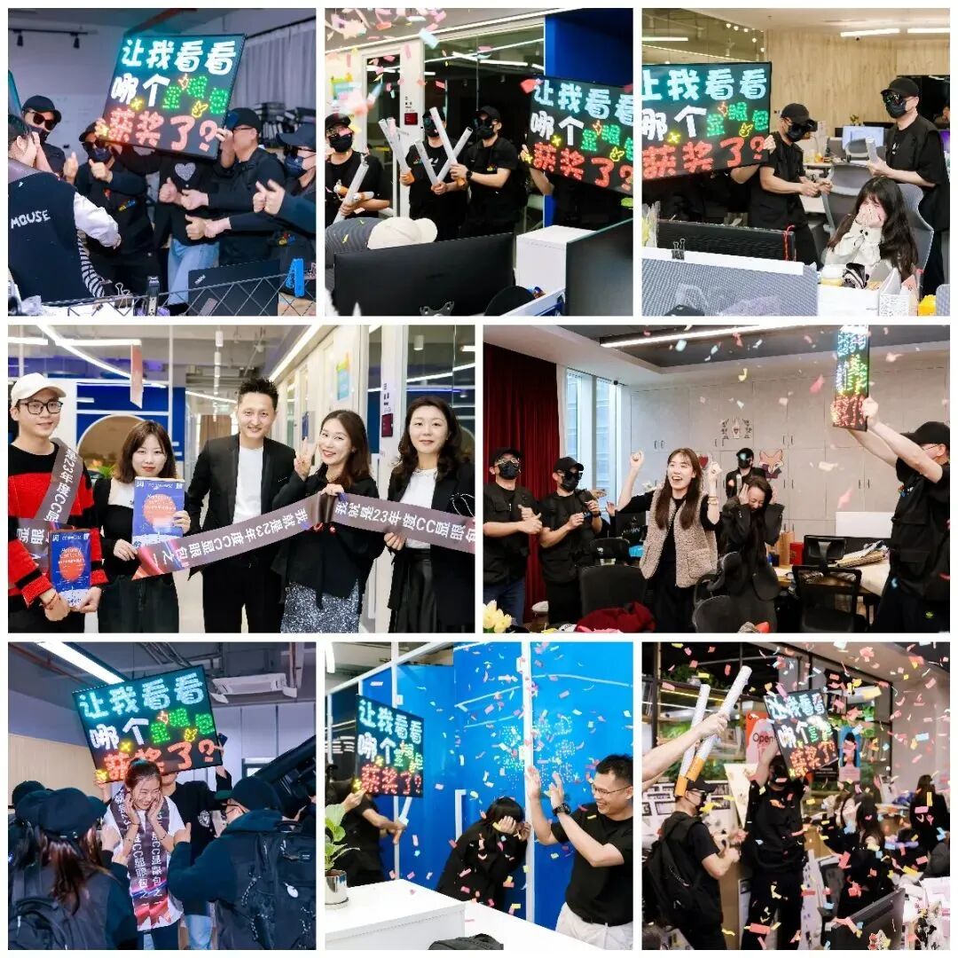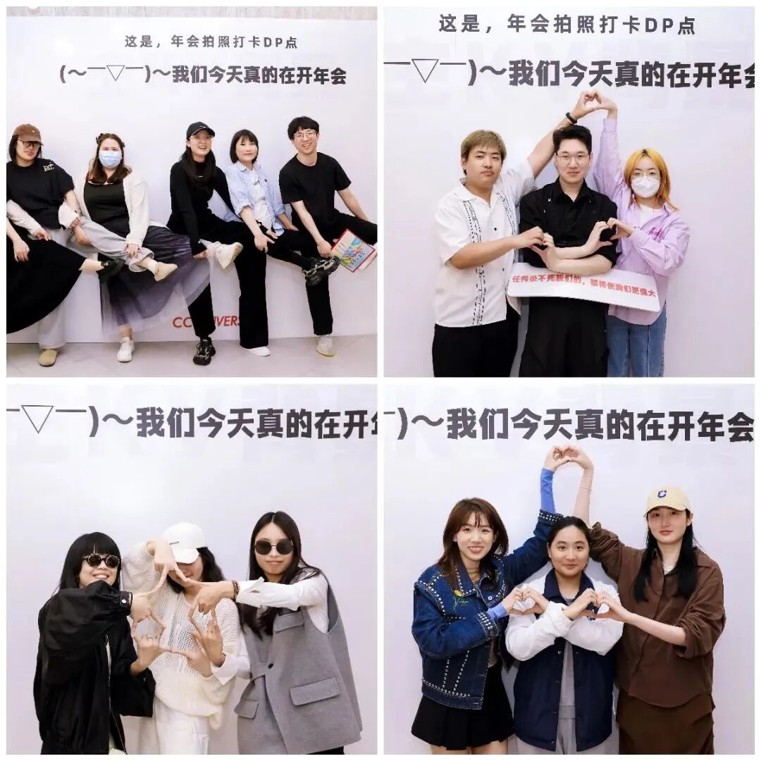 为了让大家更有年会的实感,云创设计还设置了线下的拍照打卡点,抽到对应沙雕姿势合照要求,来不及犹豫,争分夺秒随手拉上伙伴就定格瞬间。
