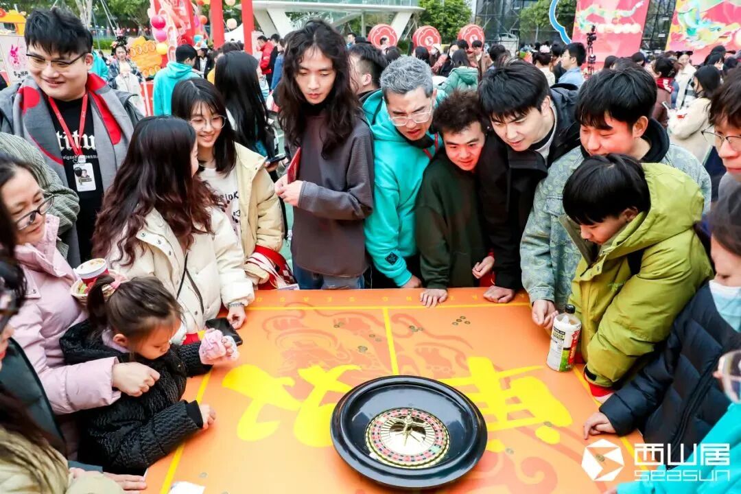 西山居2024年会主题以“西山奇遇记”为主题,以龙贺新岁,心相融,爱相融,其乐也融融,活动现场巨大的“龙”形装饰非常应景。