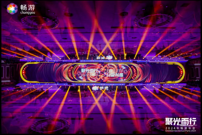 2024畅游科技的年会主题为“聚光而行”,本次年会主打一个玩得开心,准备了超多节目。开场一段动感开场舞《I’m the best》,正式点亮年会的舞台,迅速将场子热了起来。