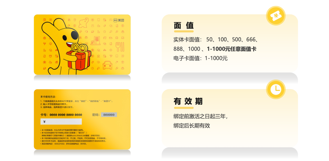 美团卡有效期:绑定前激活之日起三年,绑定后长期有效。