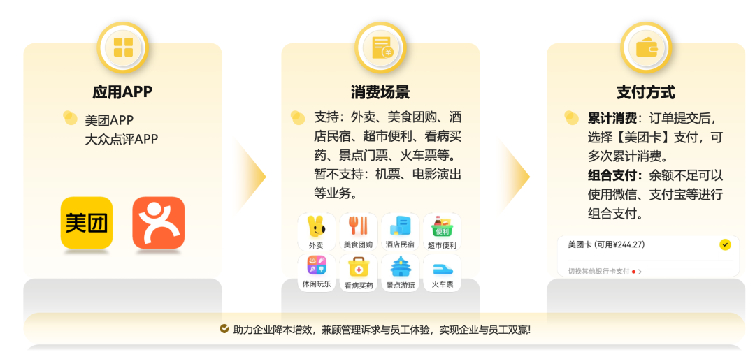 以上问题统统别怕,不妨试试“美团卡”,支持实体和电子卡形式,超多品类可选,企业对公开票,轻松拿捏企业福利!