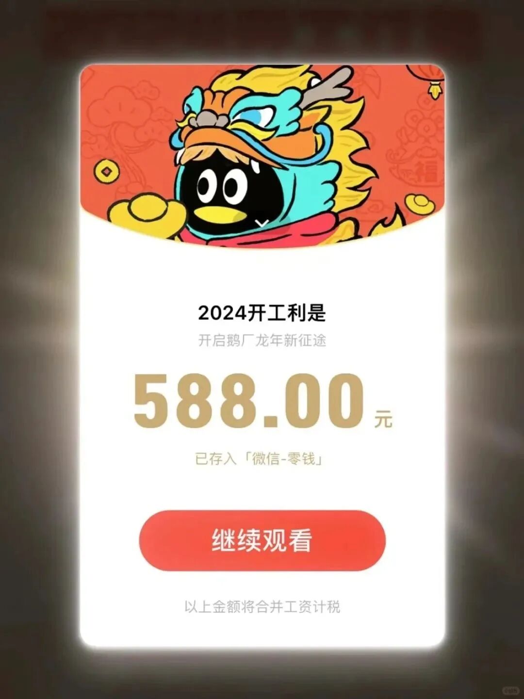 想让线上红包更有趣,还可以参考去年腾讯的开工利是玩法,是采用线上开盲盒形式,除了往年传统的400,还有隐藏款588、666、888,点开红包的时候,主打一个惊喜刺激!