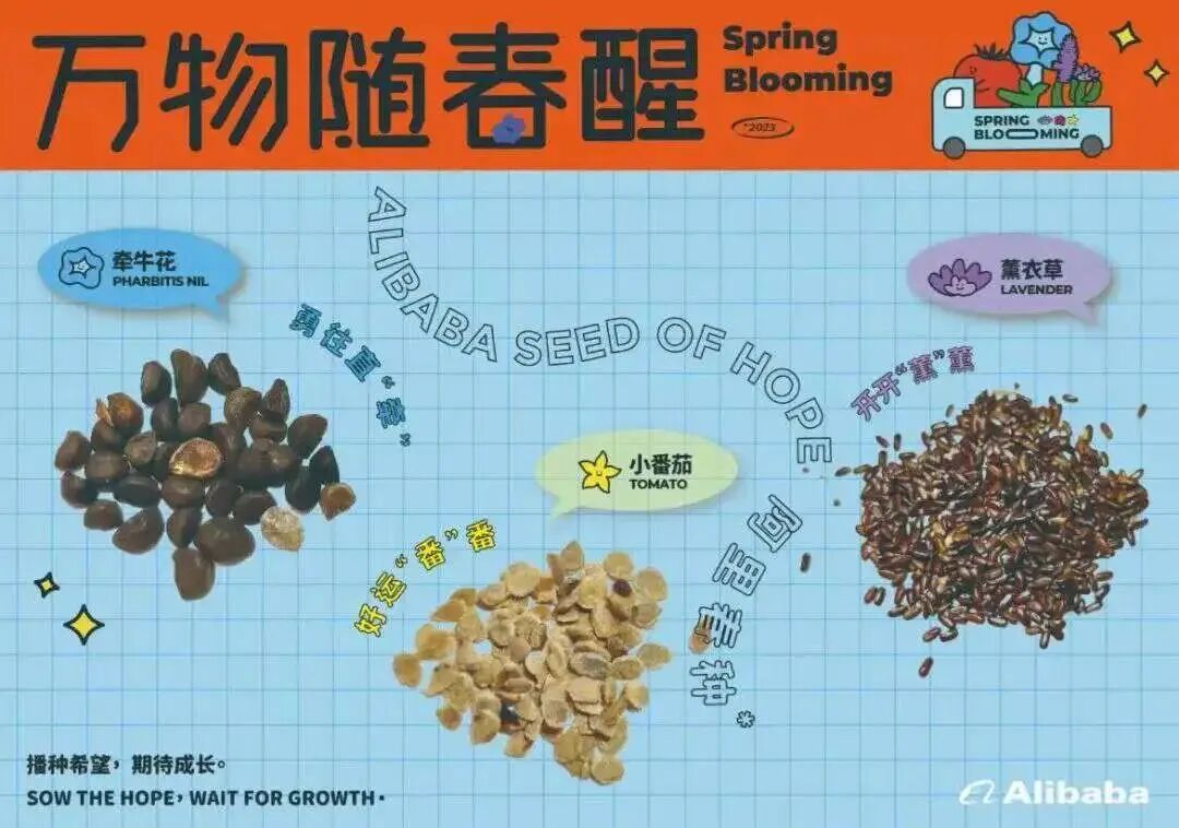 阿里每年的开工仪式都会延续传统——「赠以春种种子」,将「阿里春种」概念种到每一名员工心里:每年拿到春种,就是安心妥妥开工的节奏!去年的春种种子有:牵牛花、小番茄、薰衣草~