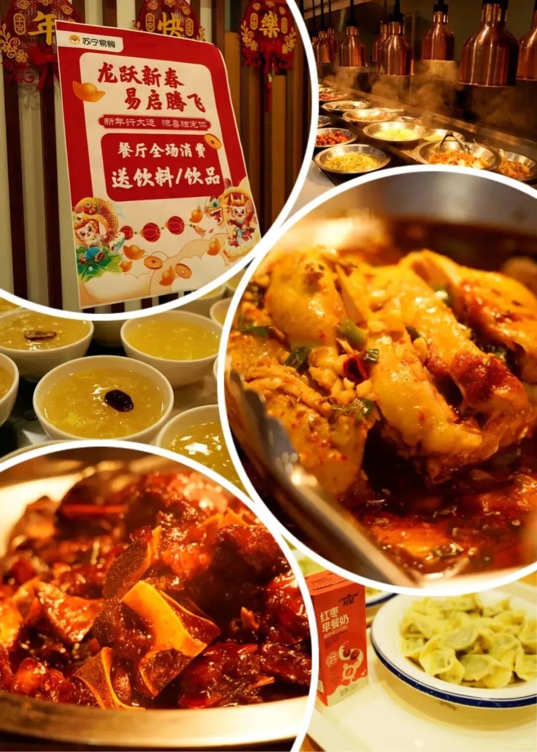 苏宁易购在开工第一天,不仅有免费早餐发放,中午各餐厅还有全场免费送银耳红枣小米甜粥/红枣银耳羹/糖芋苗/饮料/水果活动。