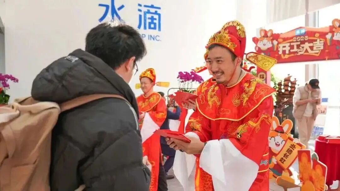 *水滴开工第一天延续传统,由老板扮财神为员工亲手发红包,不仅仅是领导对员工的祝福、欢迎,还可以让员工尽快进入工作状态!