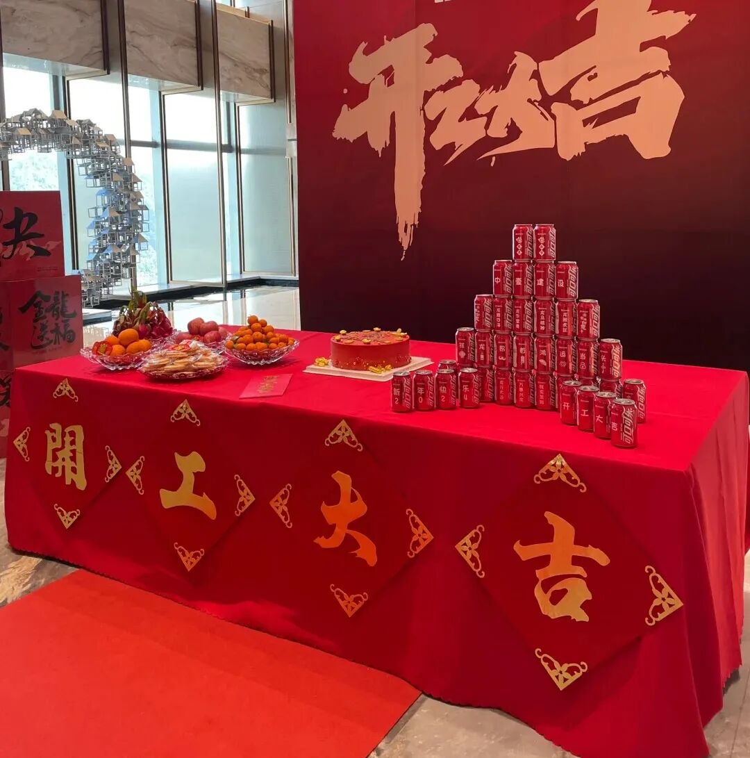 可以提前准备红色桌布,定制积极语句的卡牌,并提前和领导敲定开工发言稿,邀请领导在开工启动仪式上讲话,营造积极向上的工作氛围。