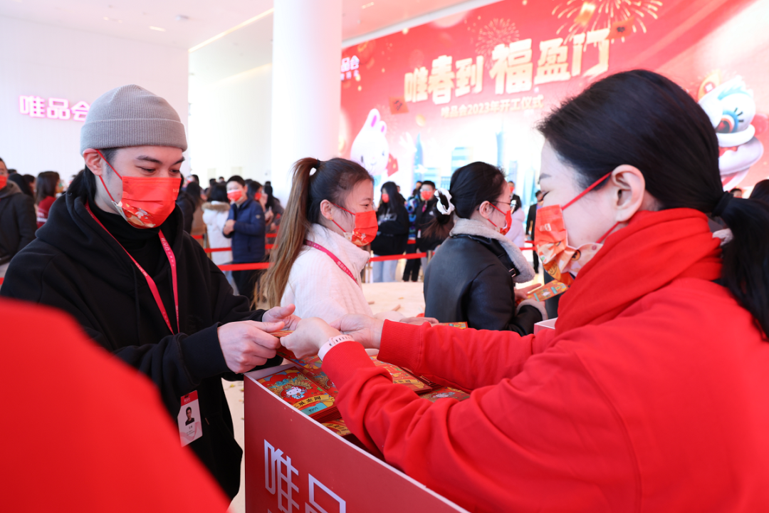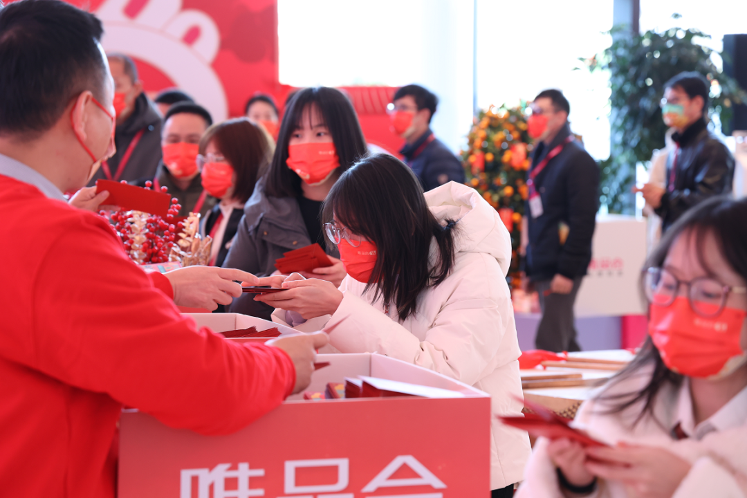 唯品会的高管们在开工日这天喜气洋洋的为员工们派利是,鼓舞VIPer们的开工士气,人人皆得好彩头!