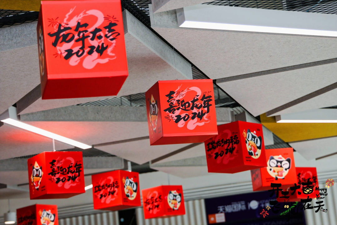 淘天集团开工时,在天花板上挂满红灯笼还有“开工大吉”字样的盒子,还特别制作了KT版⬇️