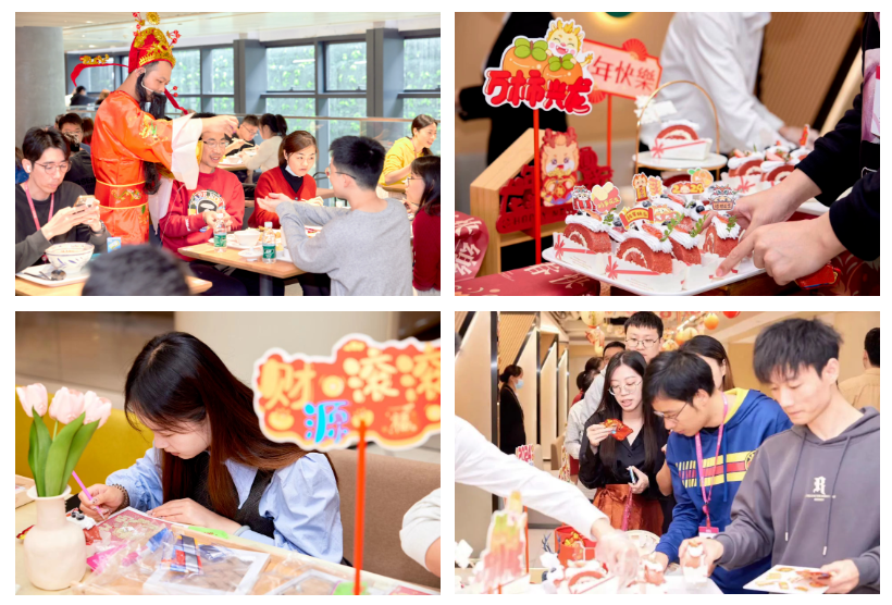 比如Flat Incubator组织了美食庙会,琳琅满目的美食摊位让人应接不暇,大满足烤肠、心想事成糖水铺、乘风破浪寿司船、五福临门热卤店、年味糖画摊、港式鸡蛋仔、万事如意串串香......还有前星爸爸店长亲手调制的财神咖啡!