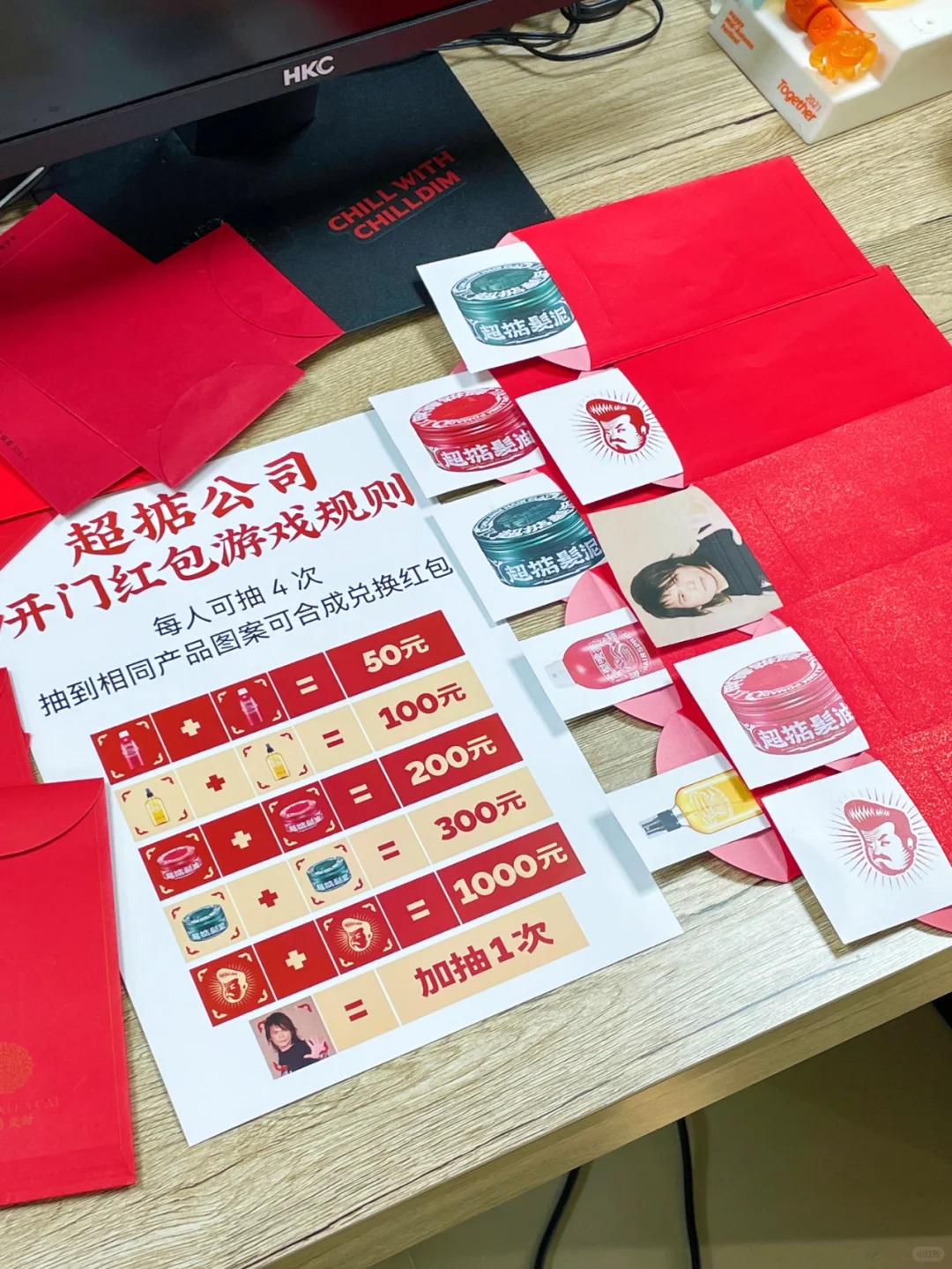 不发红包,直接整一面红包墙,既是新年氛围的营造,又能让大家自己动手获取新年第一次好运。