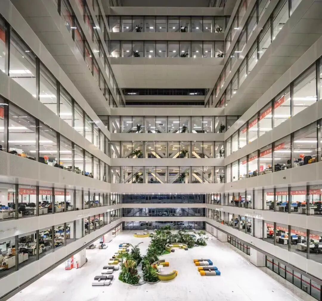 不仅园区大楼外观颇有设计感,工位区的设计更是注重空间的开放性和光线的引入,选择了大面积的落地窗设计。