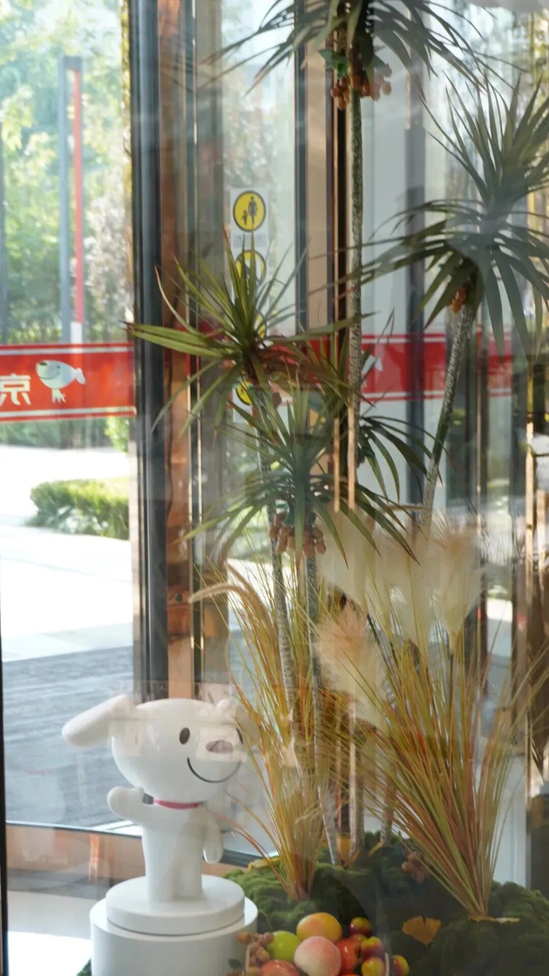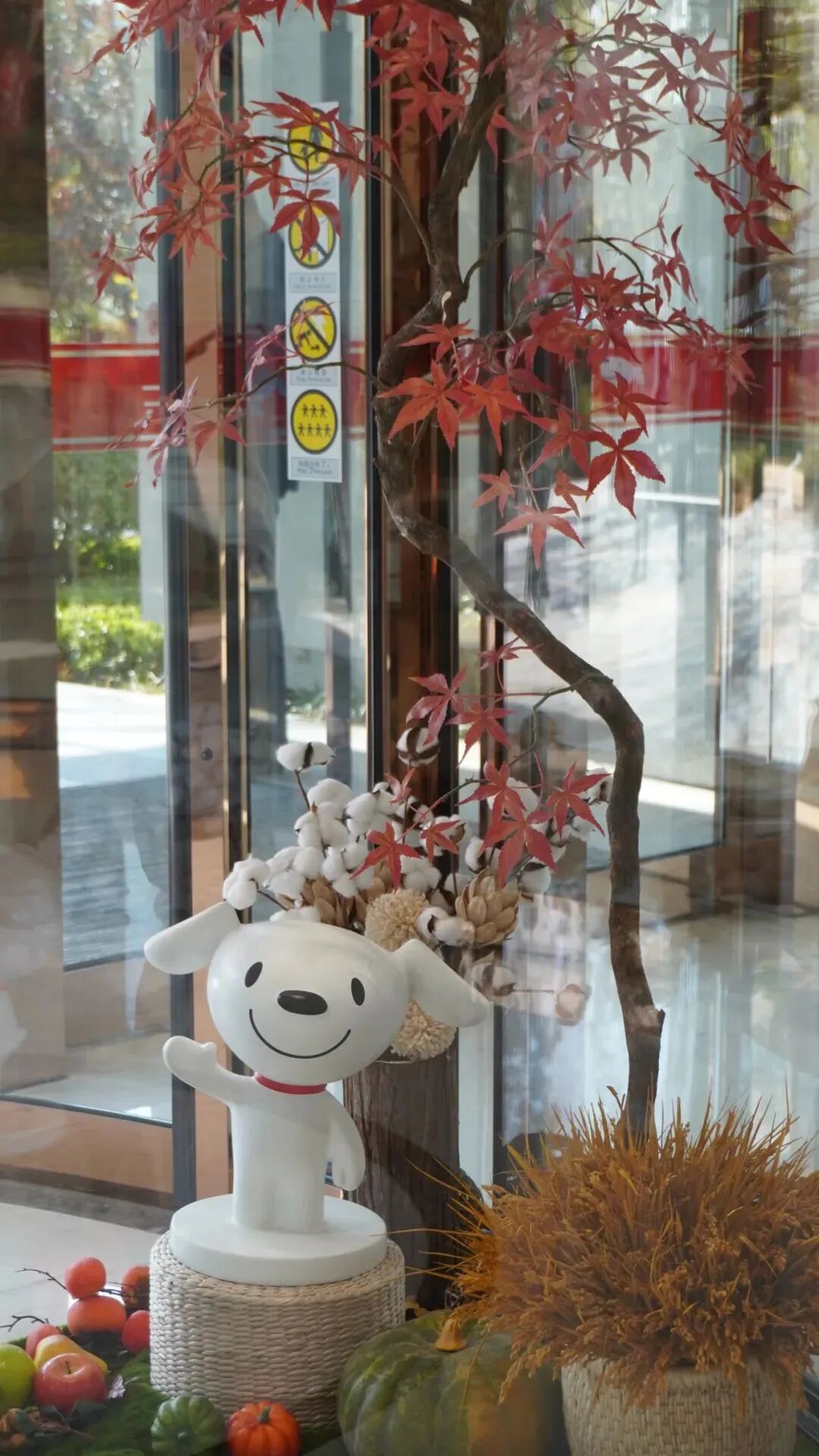 旋转门的设计也很有意思,被设计成了一个四季造景的艺术装置,小知去的时候,精心布置的秋季造景令人眼前一亮,旋转门里是累累的硕果、红红的枫叶……特别漂亮。