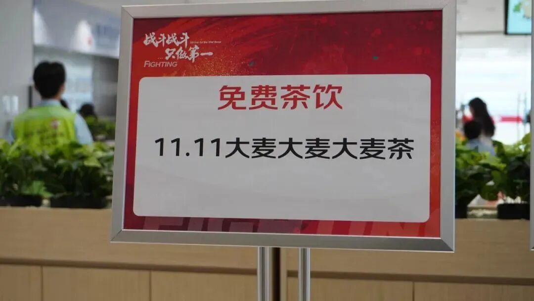 在特殊的时间节点,食堂还会提供一些专属福利,小知去的时候正值双十一期间,食堂就提供了免费的大麦茶,供大家饮用。